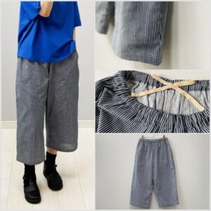 播州織ダブルガーゼの半袖ワンピースとストライプパンツのセット