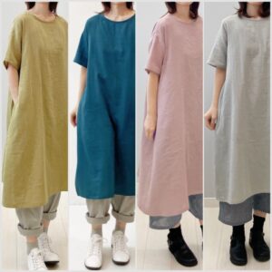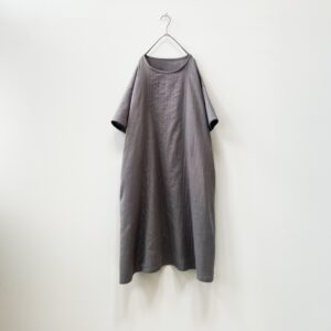 ジャパンリネンのシンプルな半袖ワンピース。