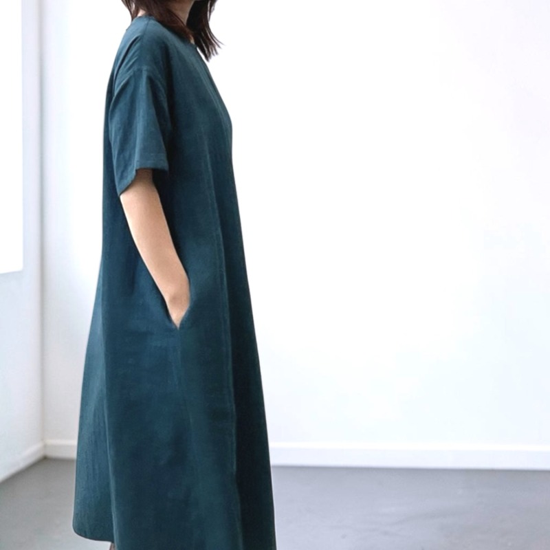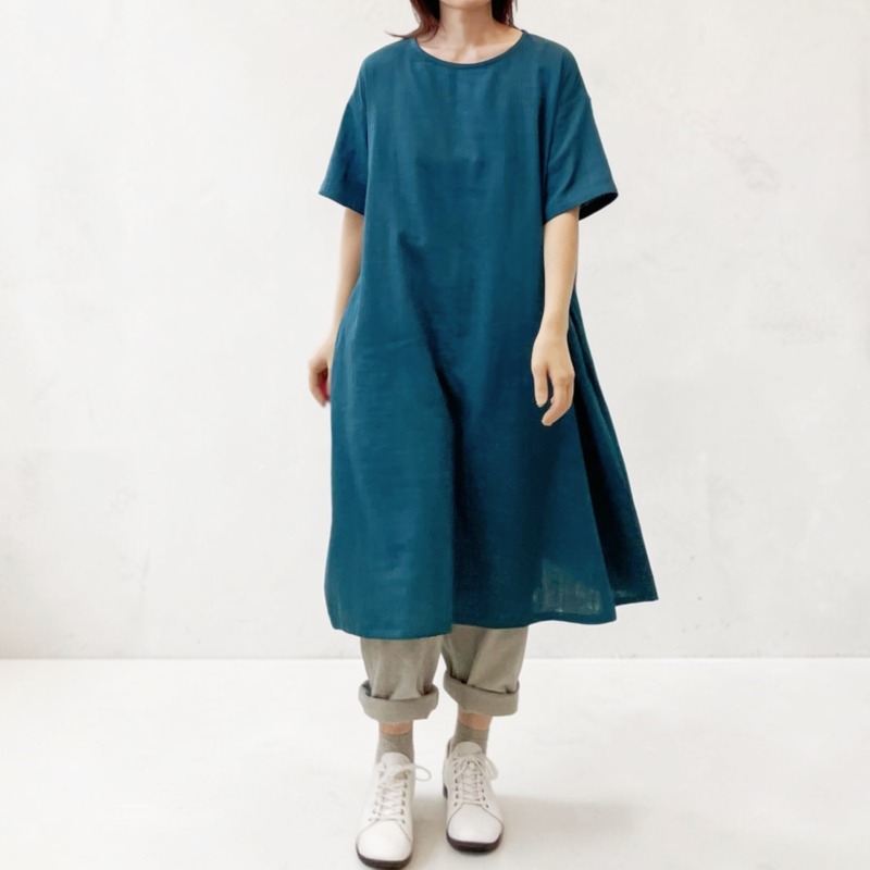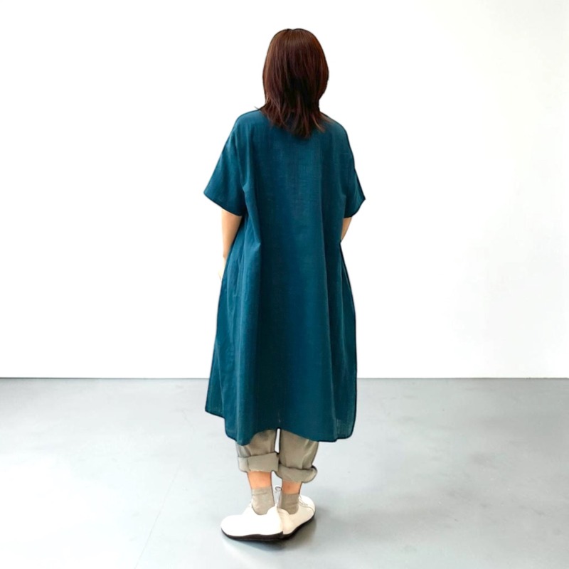 ダブルガーゼの半袖ワンピース。ブルーグリーン追加で4色揃いました。