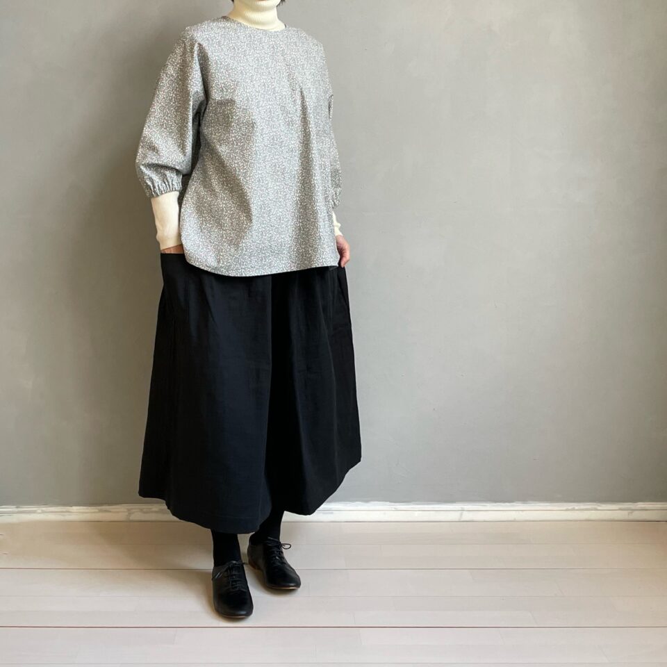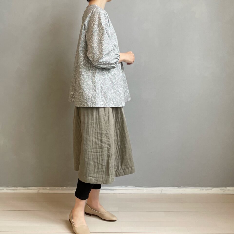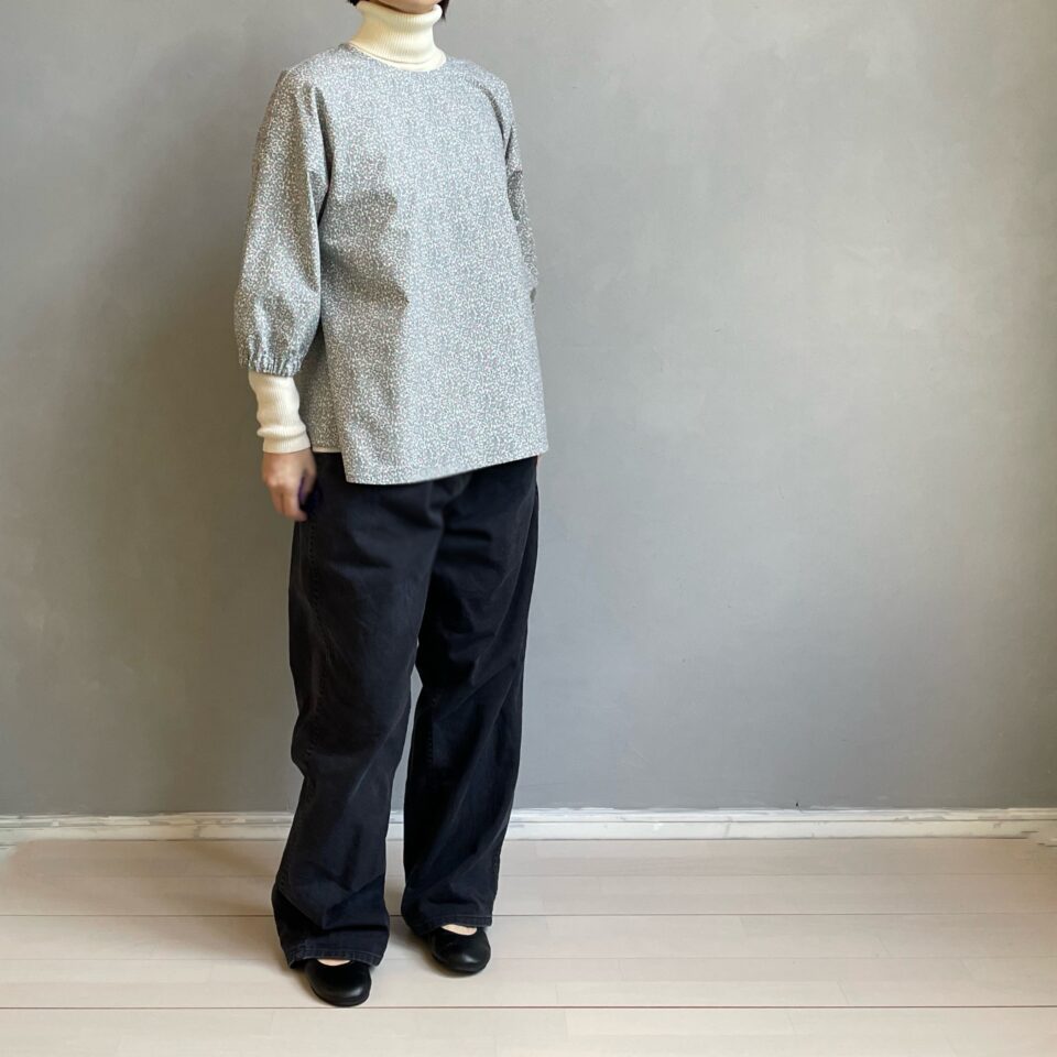 シュッとした襟ぐりとふんわり袖の、上品さと可愛らしさが共存するブラウスに仕上がりました。