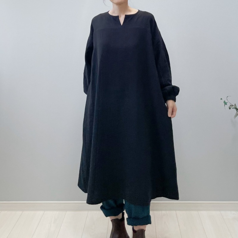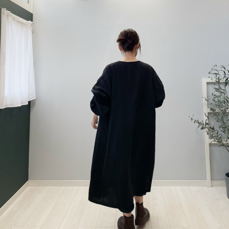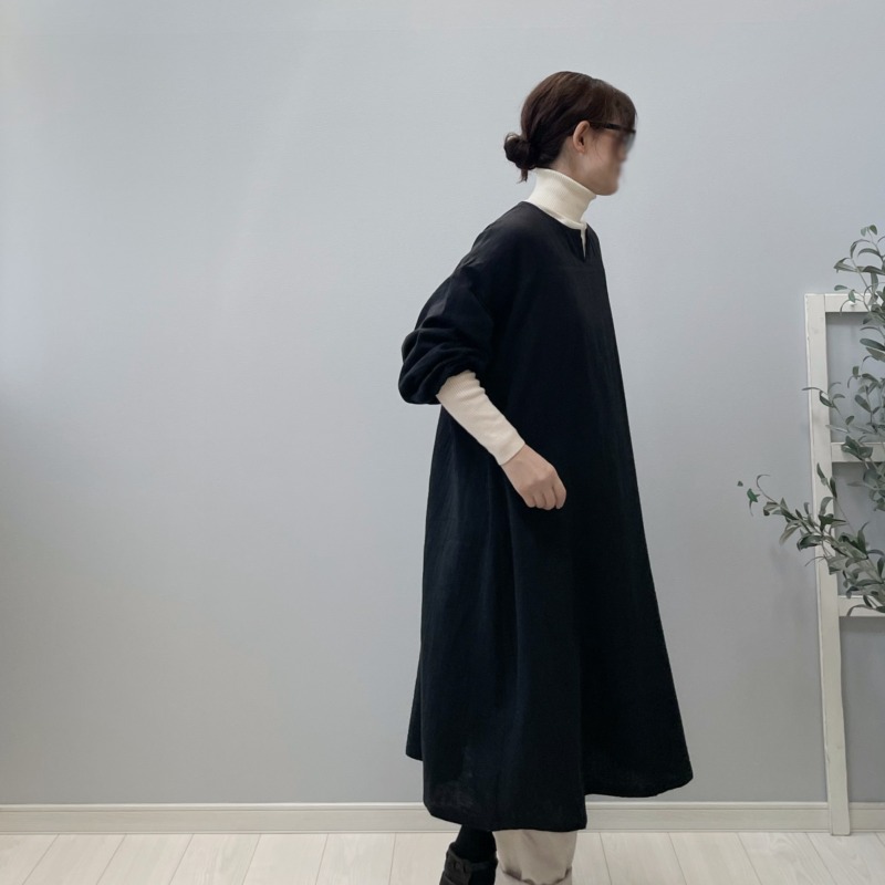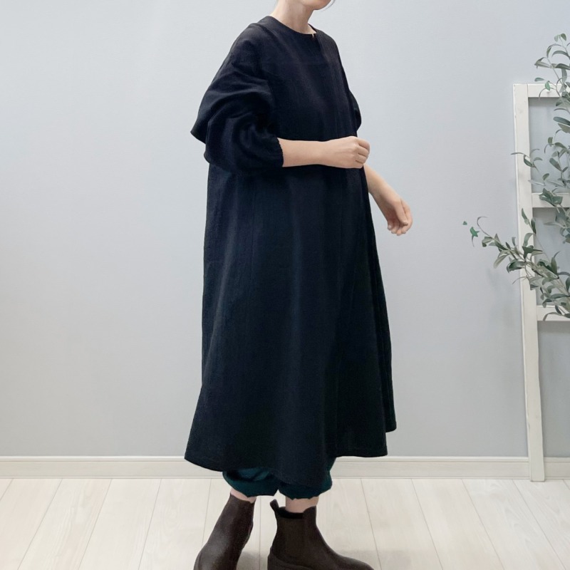 冬のはじまりに似合う黒。ダブルガーゼのひよりワンピース。