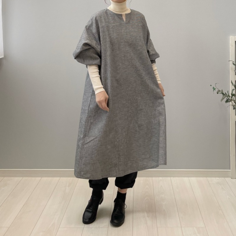 綿麻千鳥のひよりワンピース。モノトーンは近日中に再販予定です。