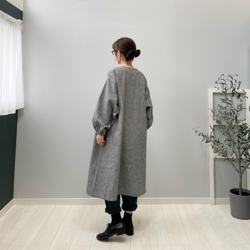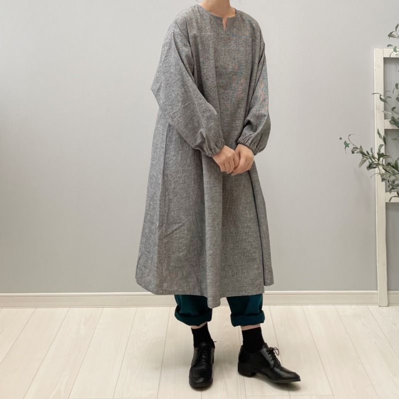 綿麻千鳥のひよりワンピース。モノトーンの販売再開しています。