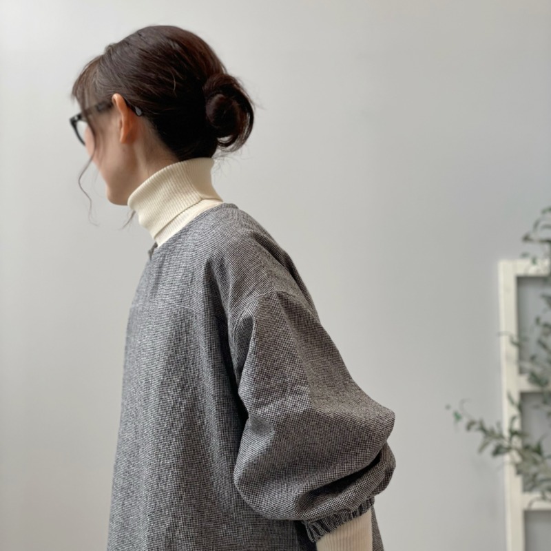 綿麻千鳥格子の「ひよりワンピース」モノトーン。