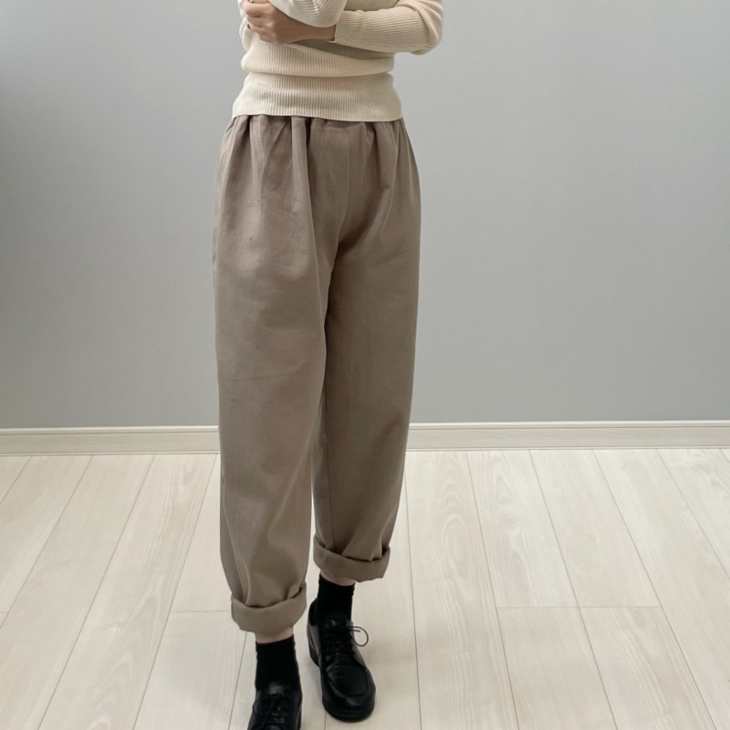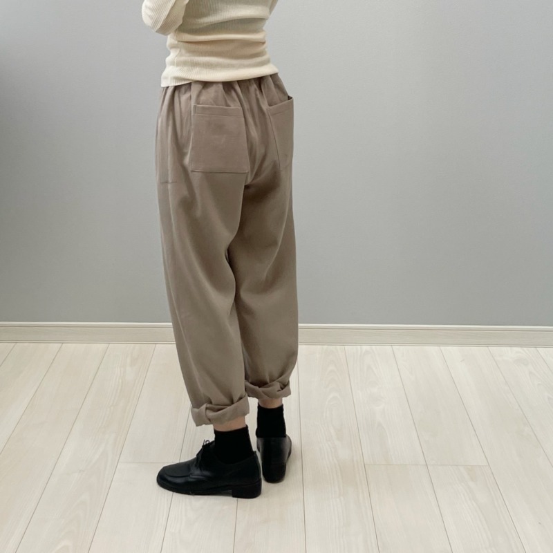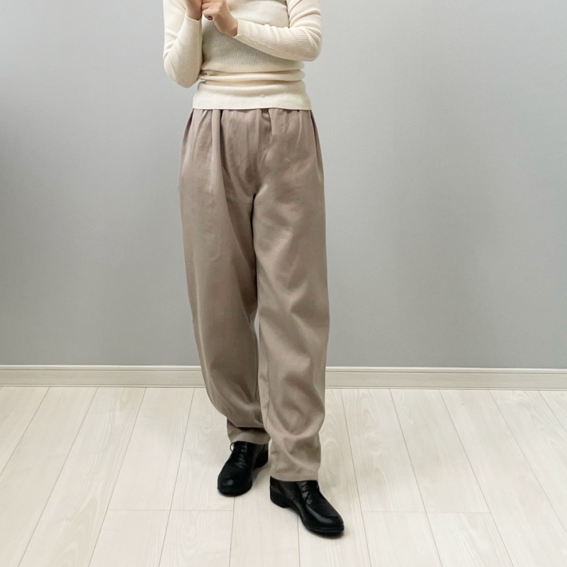 今日のもうひとつのお楽しみは、綿ウールのアンダードレスパンツ新色「サンドベージュ」。