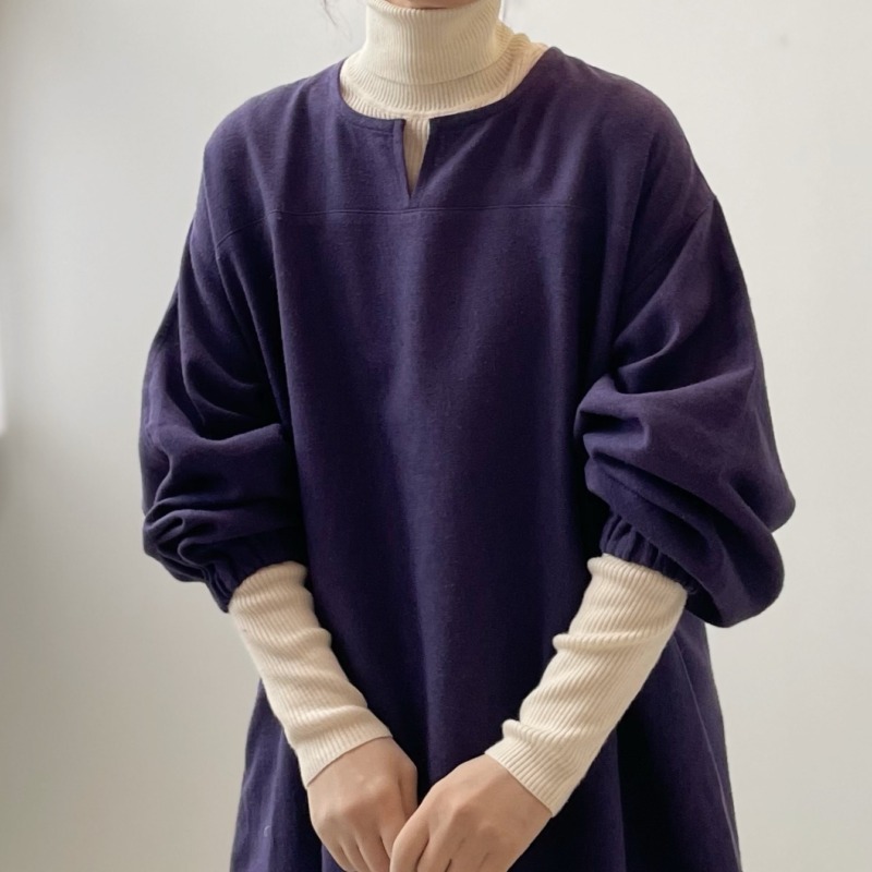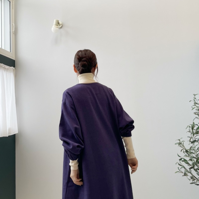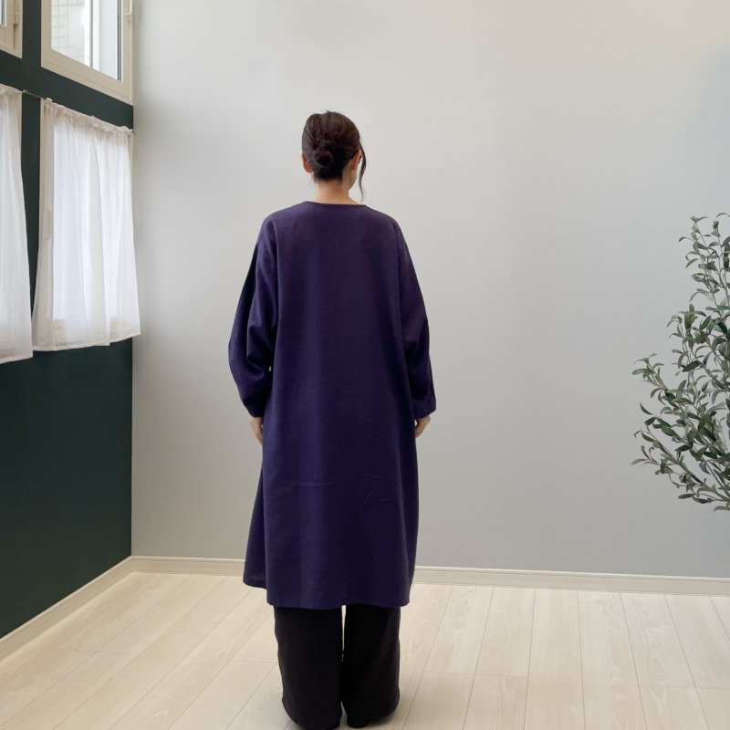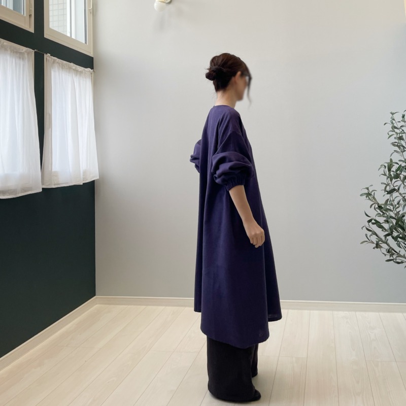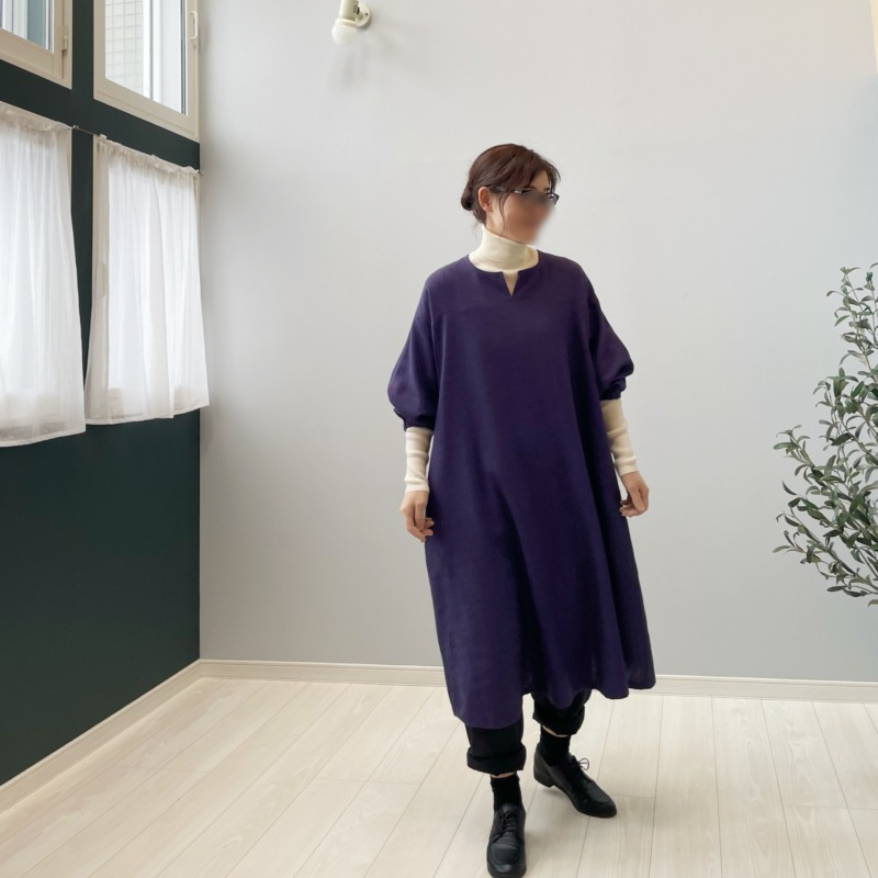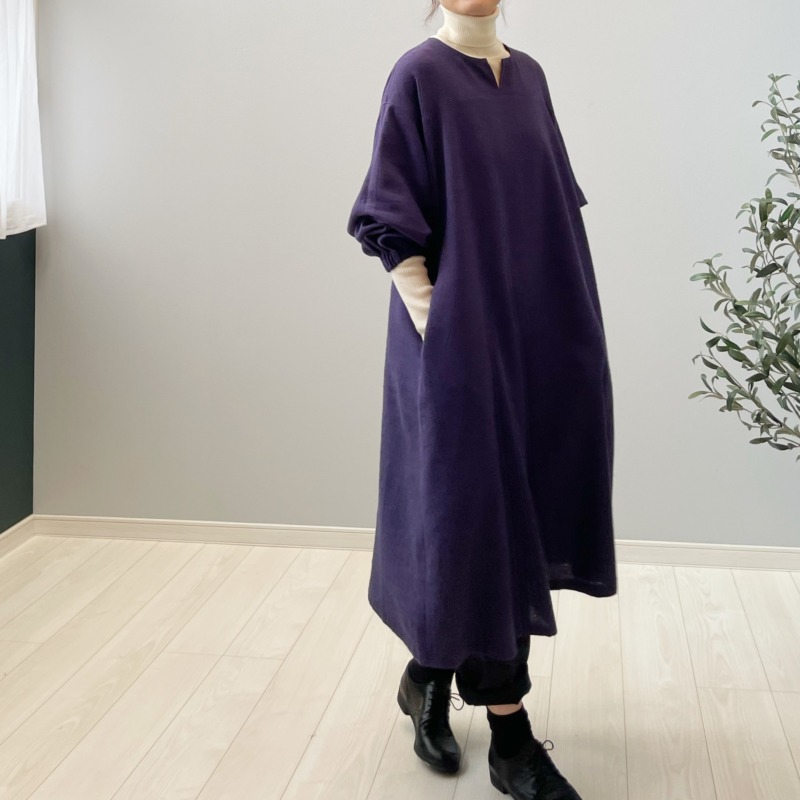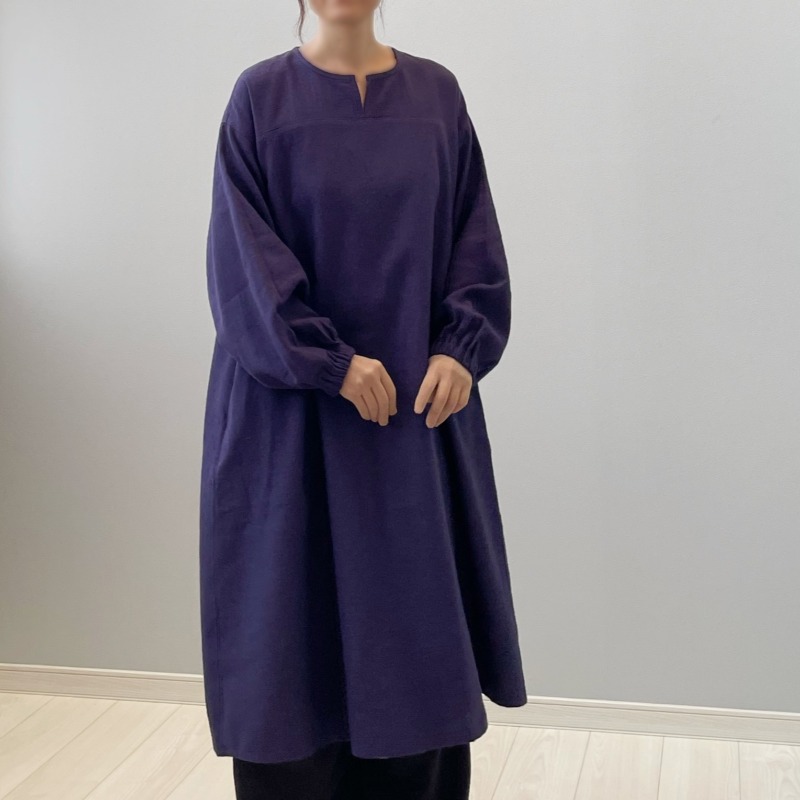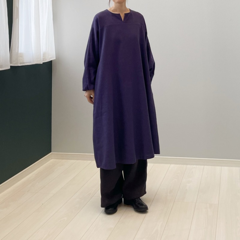 スミレ色。綿麻起毛のひよりワンピース。着用画像を紹介します。