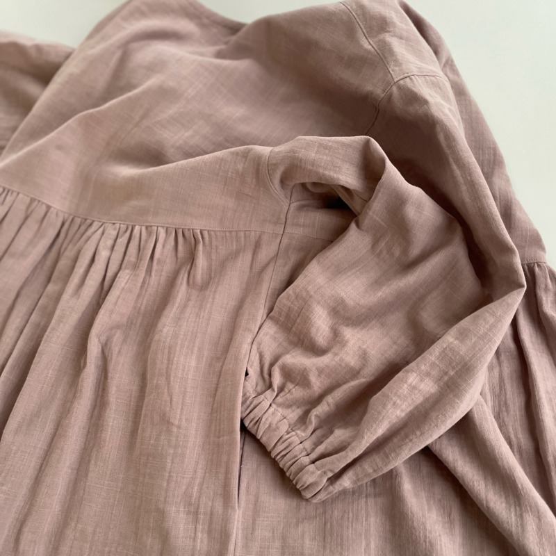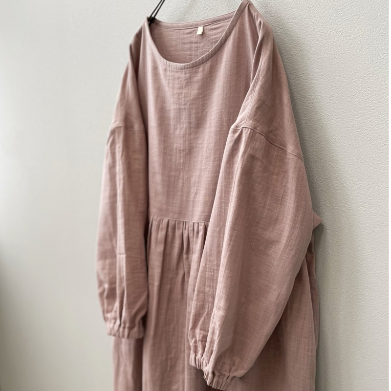 2026年 販売予定。第1弾は あずきミルク色ギャザーワンピースです。