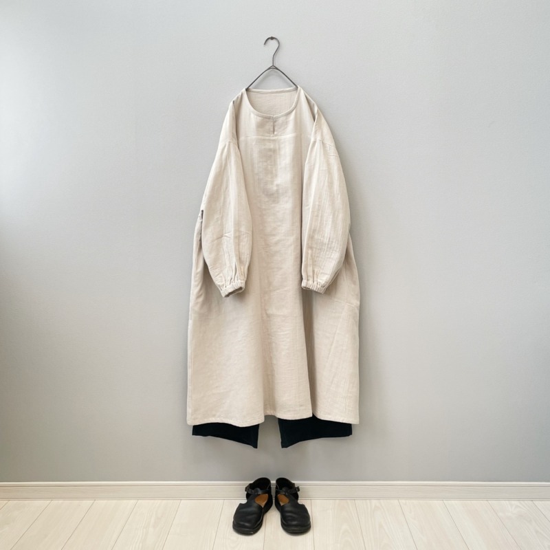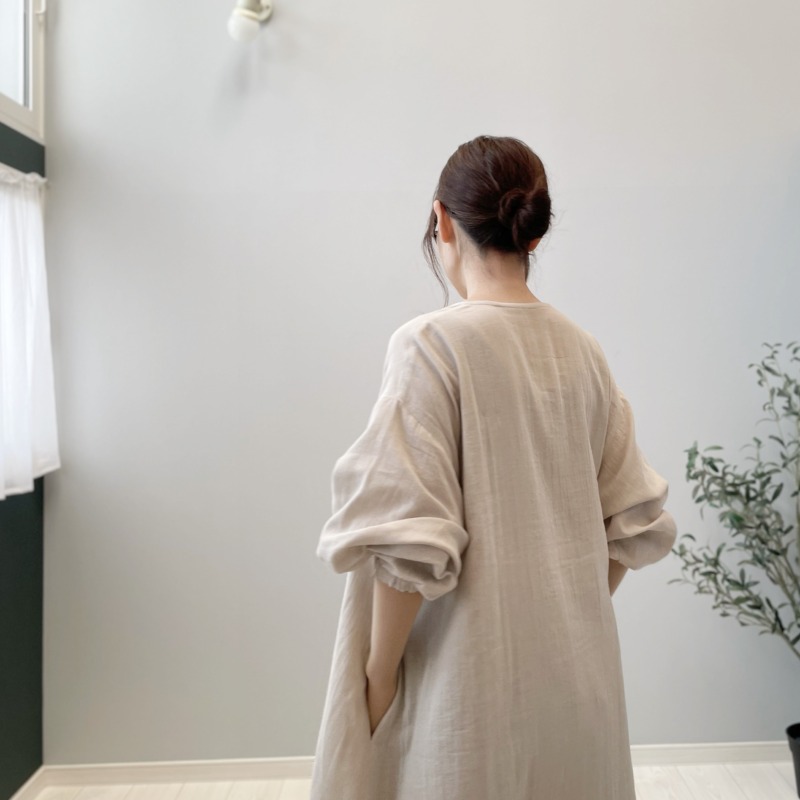 シルクベージュのダブルガーゼで作った ひよりワンピース。