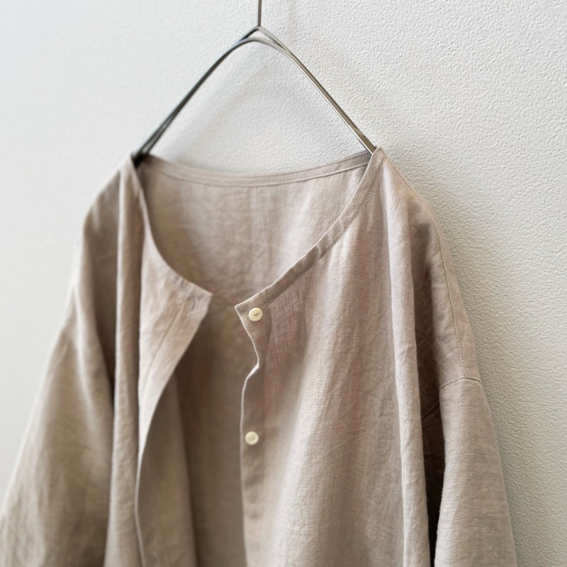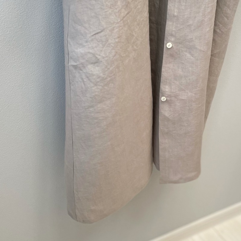 動くたびに布がやさしく揺れ、春の空気を含みます。シワもリネンらしくていいですね。
