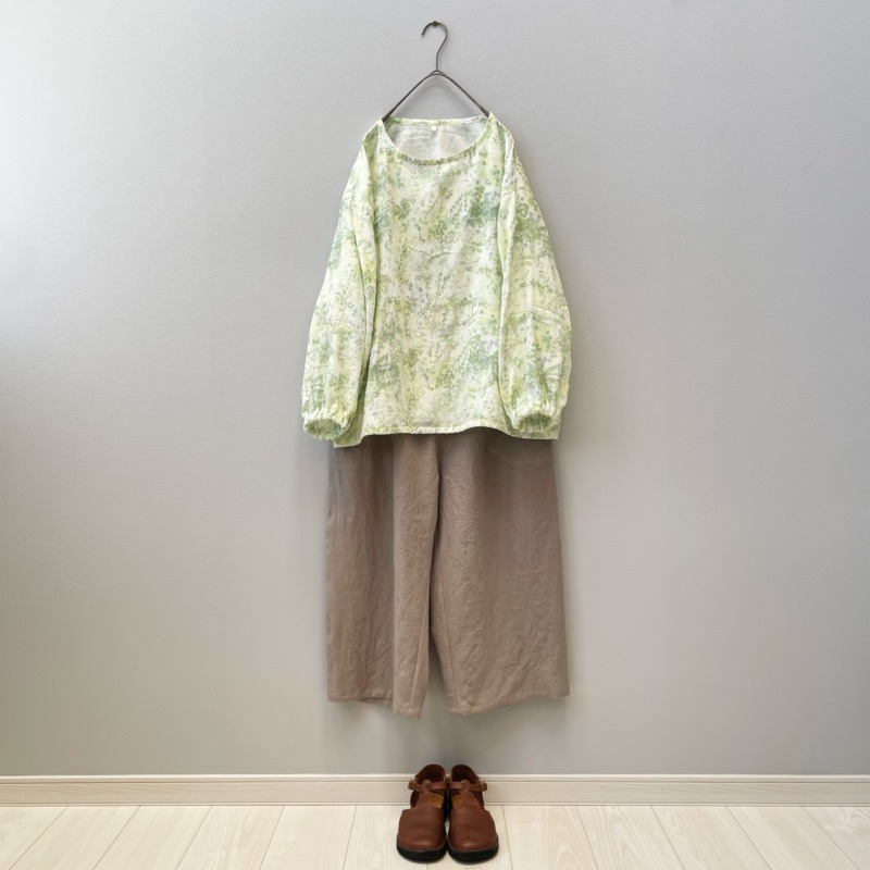 ワンピースに合わせても、一枚で穿いてもサマになる半端丈のワイドパンツです。春になったらきっと活躍してくれることでしょう。