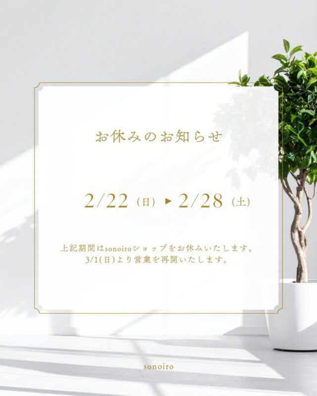 昨日お知らせしました通り、2/22〜2/28 sonoiro3つのショップをお休みします。