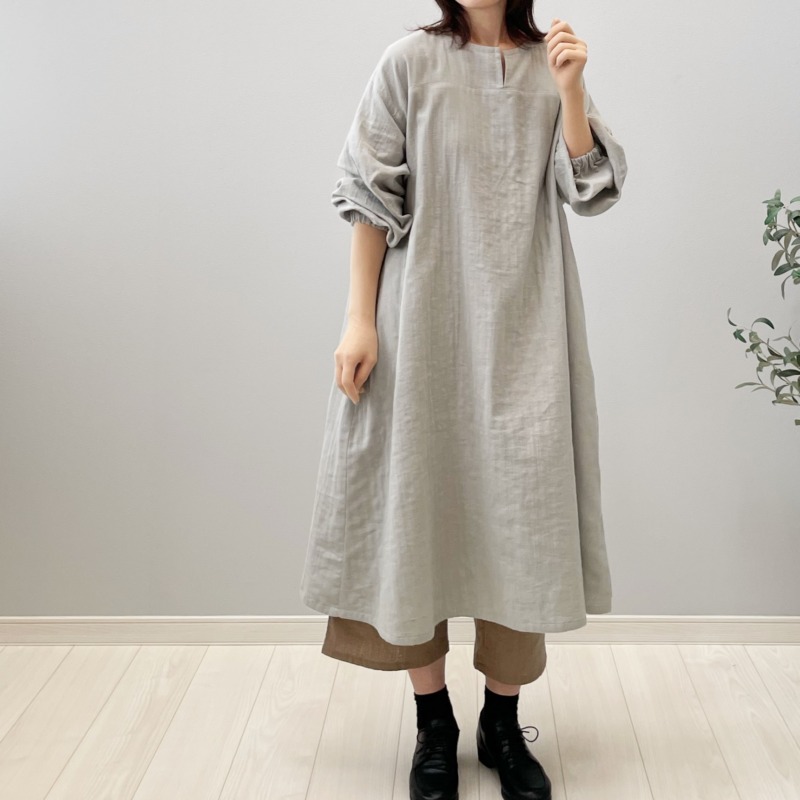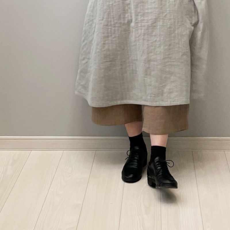 ワンピースの裾から少しのぞかせると、控えめなトーンながら全体の印象を引き締めてくれる色合いです。