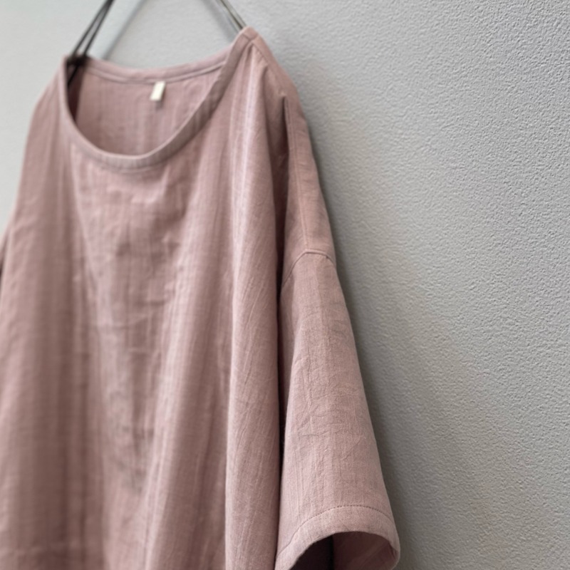 ゆったりとした着心地で、ふわっとやわらかなダブルガーゼを使用しています。軽くやさしい肌ざわりで、毎日手に取りたくなる。