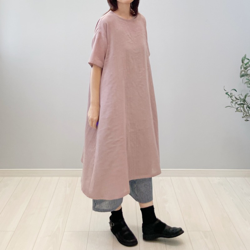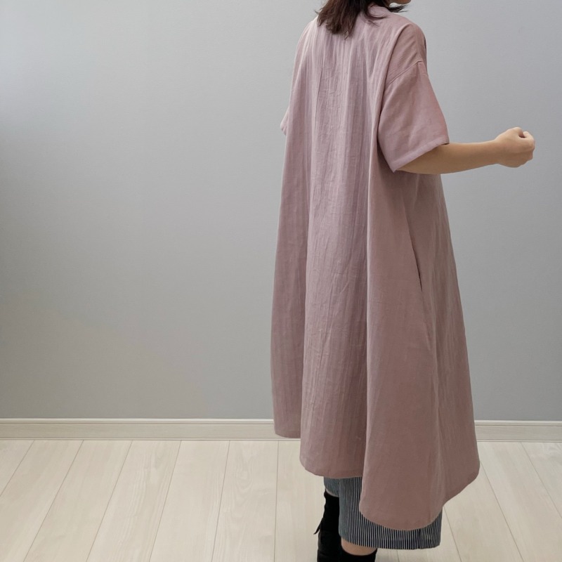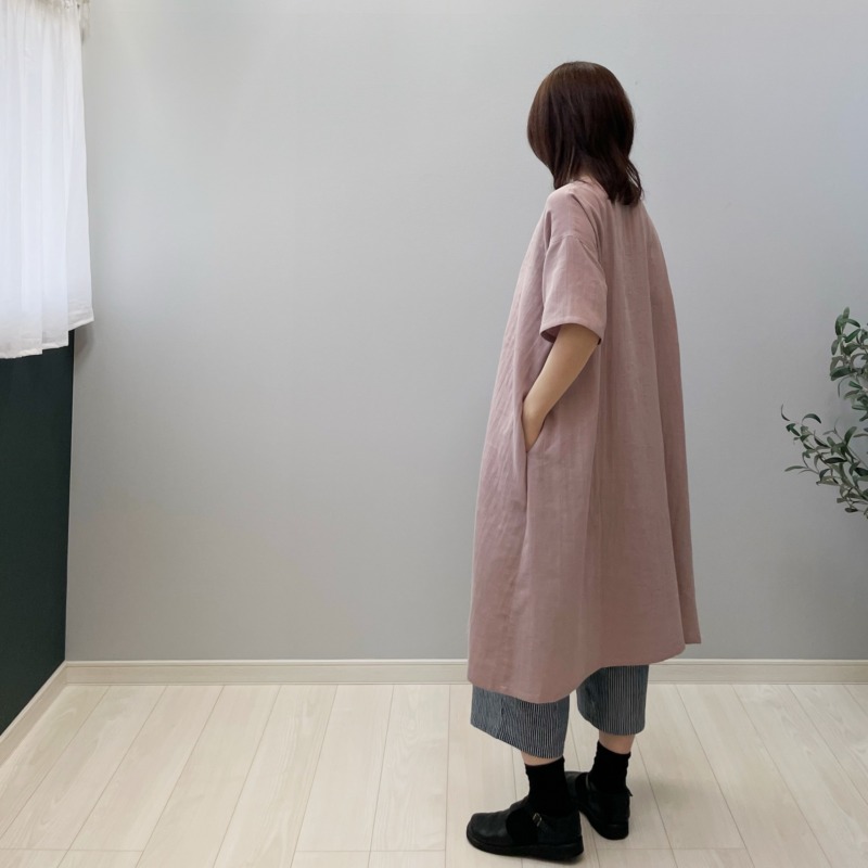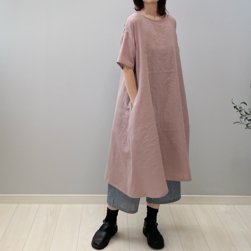 ゆったりとしたデザインなので中に長袖を重ねることもでき、季節の変わり目にも取り入れていただけます。