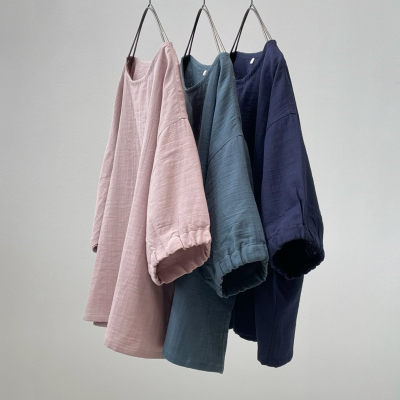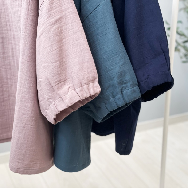 伸縮性はありませんが、身幅・袖幅たっぷりで着やすいタイプです。