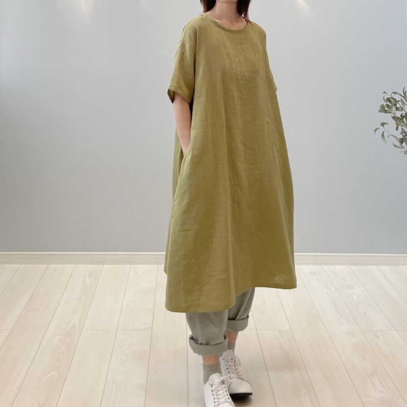 ゆったりとしたシルエットなのでワンピースの下に重ねても窮屈さを感じにくい。