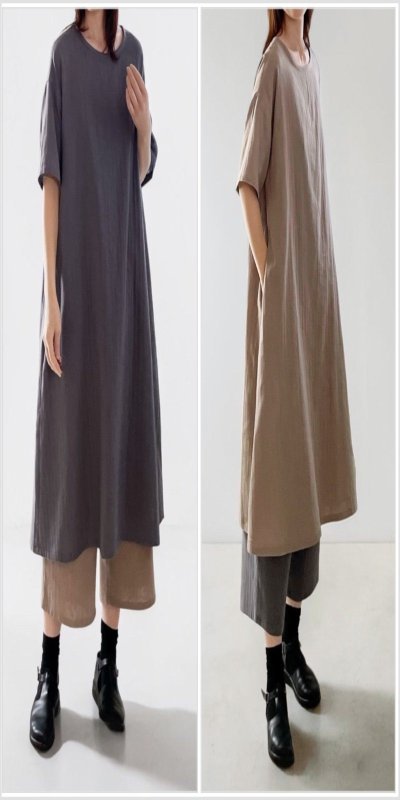 ミネラルグレイの半袖ワンピースと