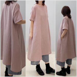 暖かくなるのが早いので、ダブルガーゼの半袖ワンピースを紹介します。新着!!