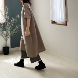 ミネラルグレイのダブルガーゼで作った半袖ワンピースです。 岩石や鉱物を思わせるような表情のあるやわらかな灰色。自然の石のようにやさしく、落ち着いた雰囲気を感じる色合いです。 青みを帯びたクールさの中にほんのりとした温かみ […]